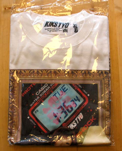 This KIKS TYO x Aki Hoshino x G-Shock T-Shirt is released for the opening of KIKS Head Shop in Shibuya, Japan. The watch featured in the frame is one of the "G-Flash Pack" models, the KIKS TYO x G-Shock x New Balance collaboration.